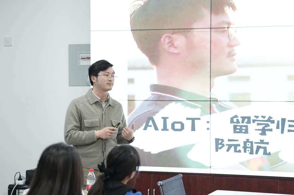 图 | 溢达创研村副总经理马安然为学生分享溢达集团科创转型发展之路