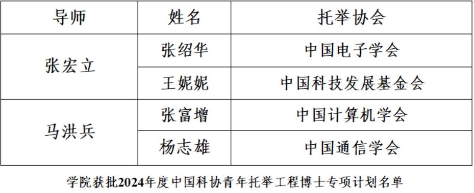 喜报 | 抖音风 张宏立教授课题组张绍华和王妮妮、马洪兵教授课题组杨志雄和张富增四名博士获批2024年度中国科协青年托举工程博士专项计划